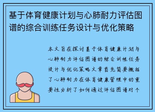 本文将围绕“基于体育减肥训练与课程结束反馈系统的用户热量感知图谱构建与分析”这一主题展开分析与探讨。首先,文章简要介绍了体育减肥训练中的热量消耗与感知的背景,以及如何通过课程结束后的反馈系统收集用户数据,构建个性化的热量感知图谱。接着,文章从四个方面进行详细分析,分别为:热量感知图谱的构建原则与方法、热量感知图谱与用户体验的关系、热量感知图谱在减肥效果分析中的应用、热量感知图谱对个性化训练方案设计...